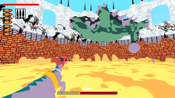 nice game. some screen shake at times like when you shoot or when the dinosaur jumps and lands after jumping, and more reactions from the crowd when at certain stages of the fight would definitely make the gameplay cooler. also, i thought that the recoil was too sudden when shooting normally and that the absence of recoil when aiming down felt off. i think even aimed down shooting should also have some recoil.